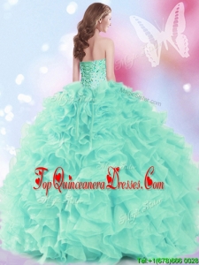 2017 Modest Beaded and Ruffled Quinceanera Dress in Apple Green