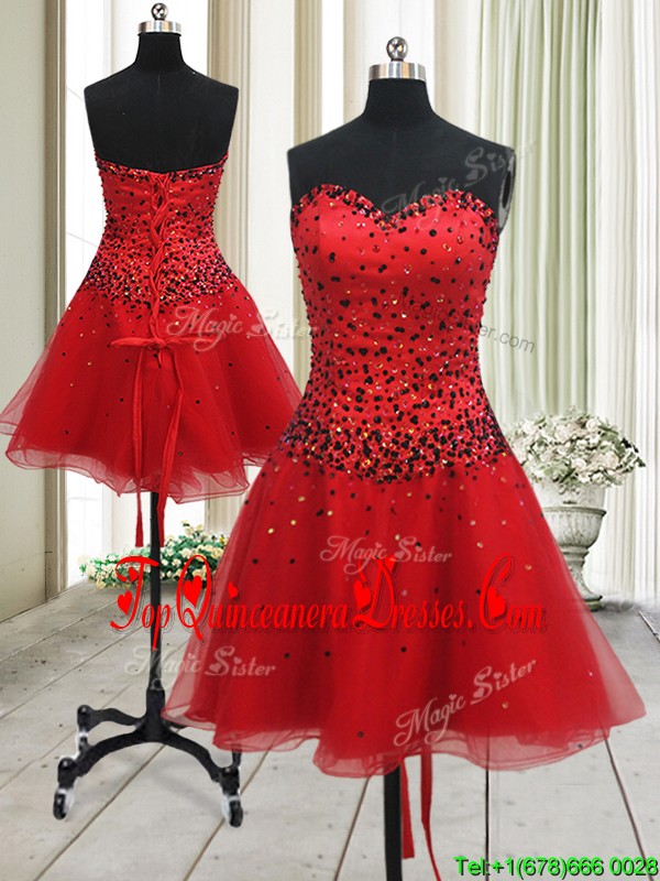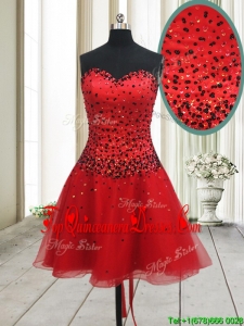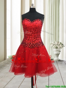 2017 New Style A Line Sweetheart Red Short Dama Dress with Beading