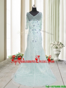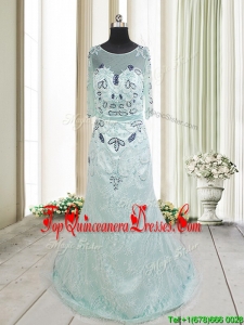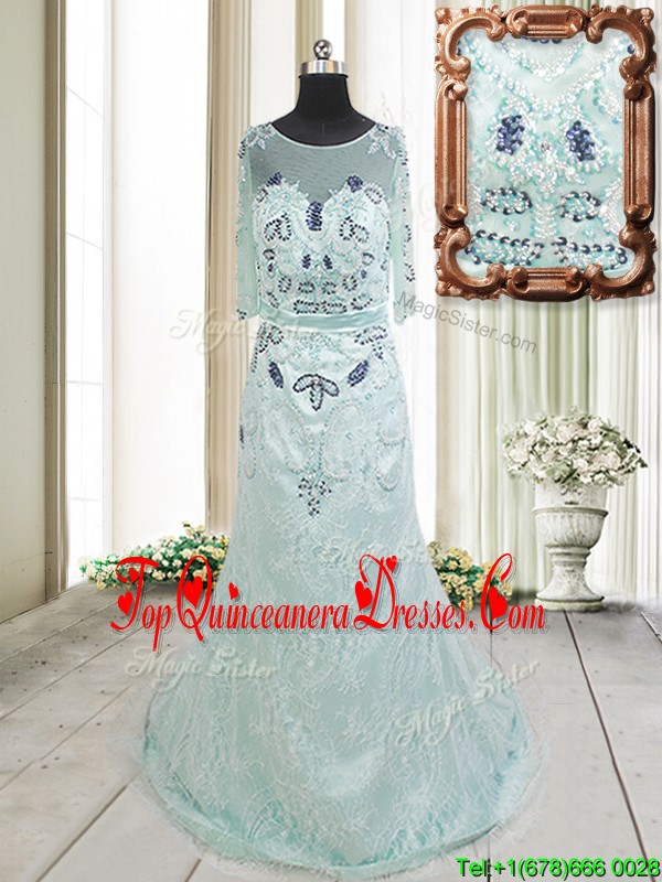 2017 Top Seller See Through Scoop Beaded and Laced Apple Green Dama Dress with Brush Train