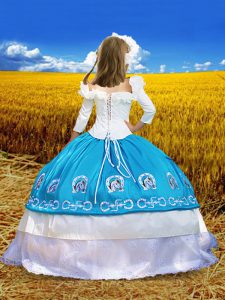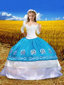 3 4 Length Sleeve Lace Up Floor Length Embroidery and Ruffles Little Girls Pageant Dress Wholesale