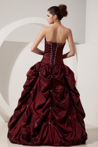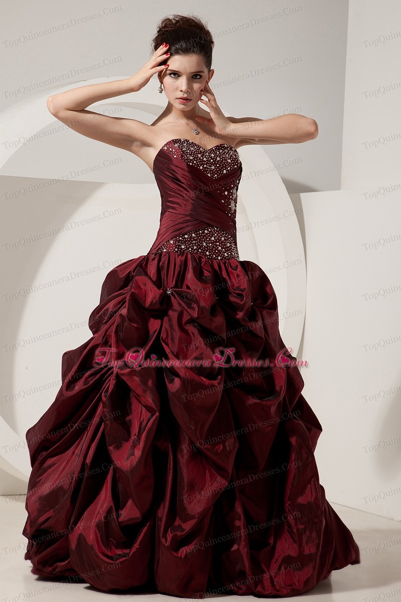 A-line Burgundy Sweet 16 Dress Sweetheart Beading Pick-ups