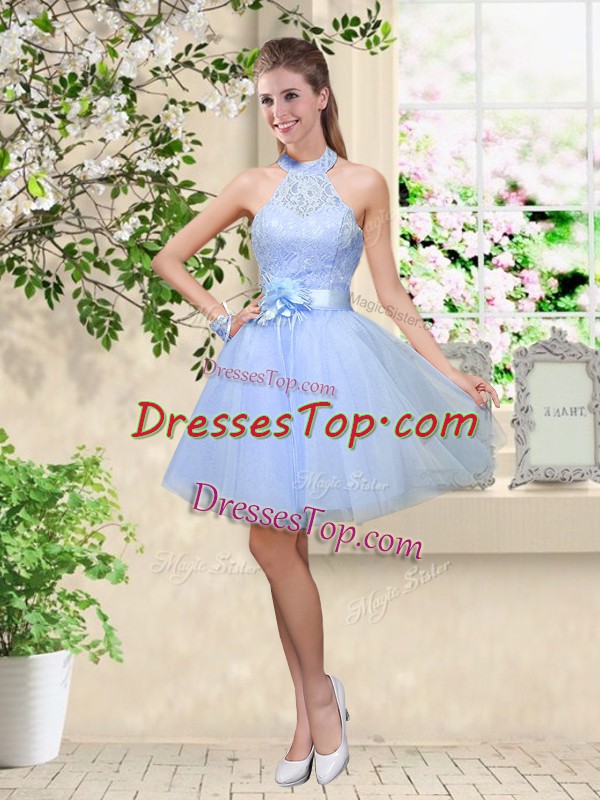 A-line Dama Dress Lavender Halter Top Tulle Sleeveless Knee Length Lace Up