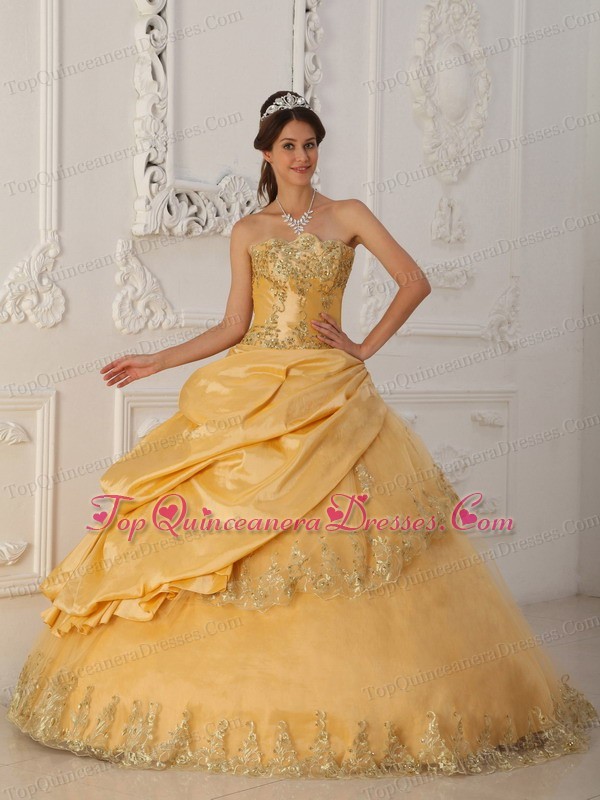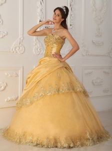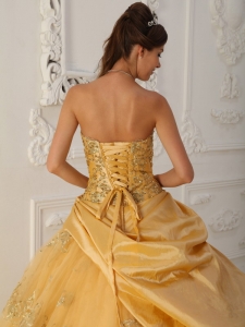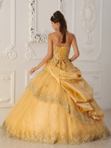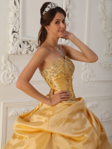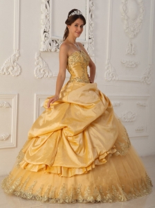 A-Line Gold Quinceanera Dress Sweetheart Pick-ups Beading