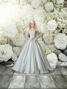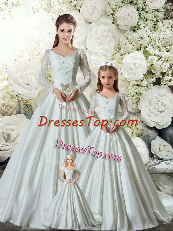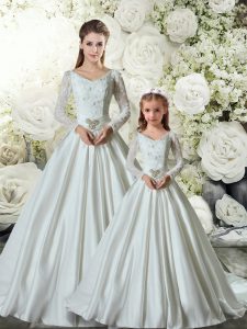 A-line Long Sleeves White 15th Birthday Dress Chapel Train Lace Up
