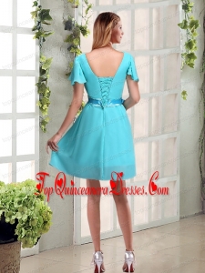A Line Ruching and Belt V Neck Dama Dress with Cap Sleeves