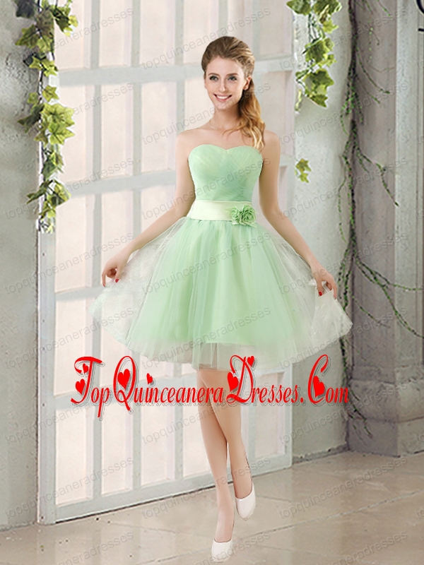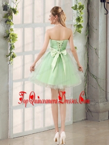 A Line Sweetheart Lace Up Dama Dress in Apple Green