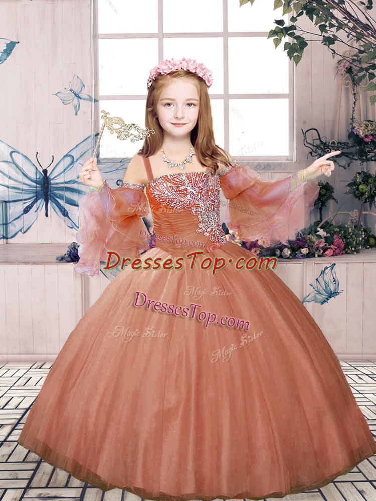Admirable Floor Length Lace Up Child Pageant Dress Rust Red for Party and Sweet 16 and Wedding Party with Beading