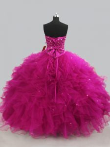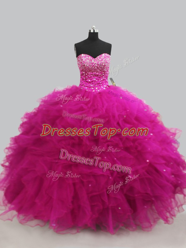 Admirable Fuchsia Sweet 16 Quinceanera Dress Sweet 16 and Quinceanera with Beading and Ruffles Sweetheart Sleeveless Lace Up