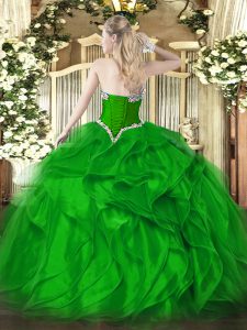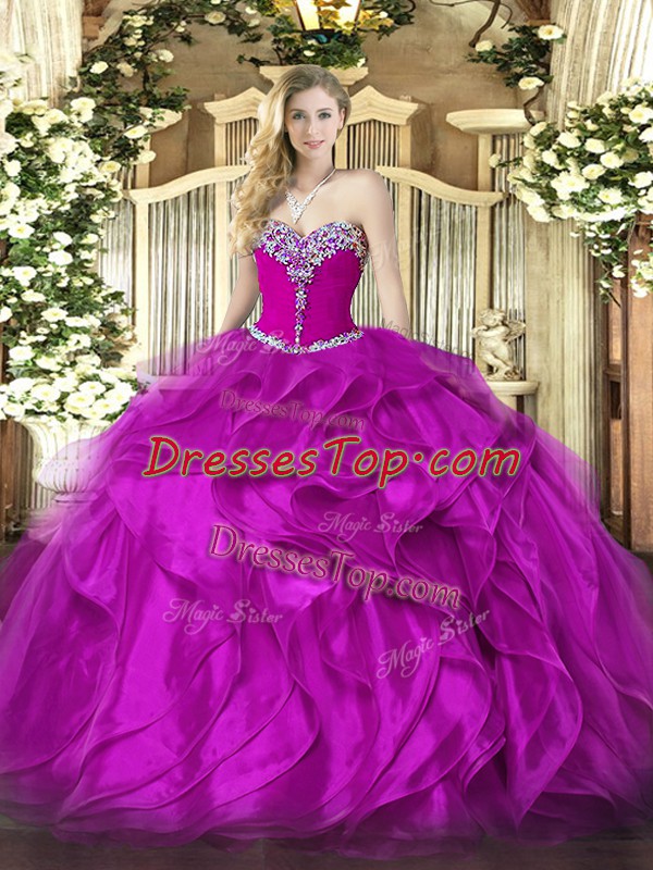 Admirable Fuchsia Sweetheart Neckline Beading and Ruffles Sweet 16 Dresses Sleeveless Lace Up