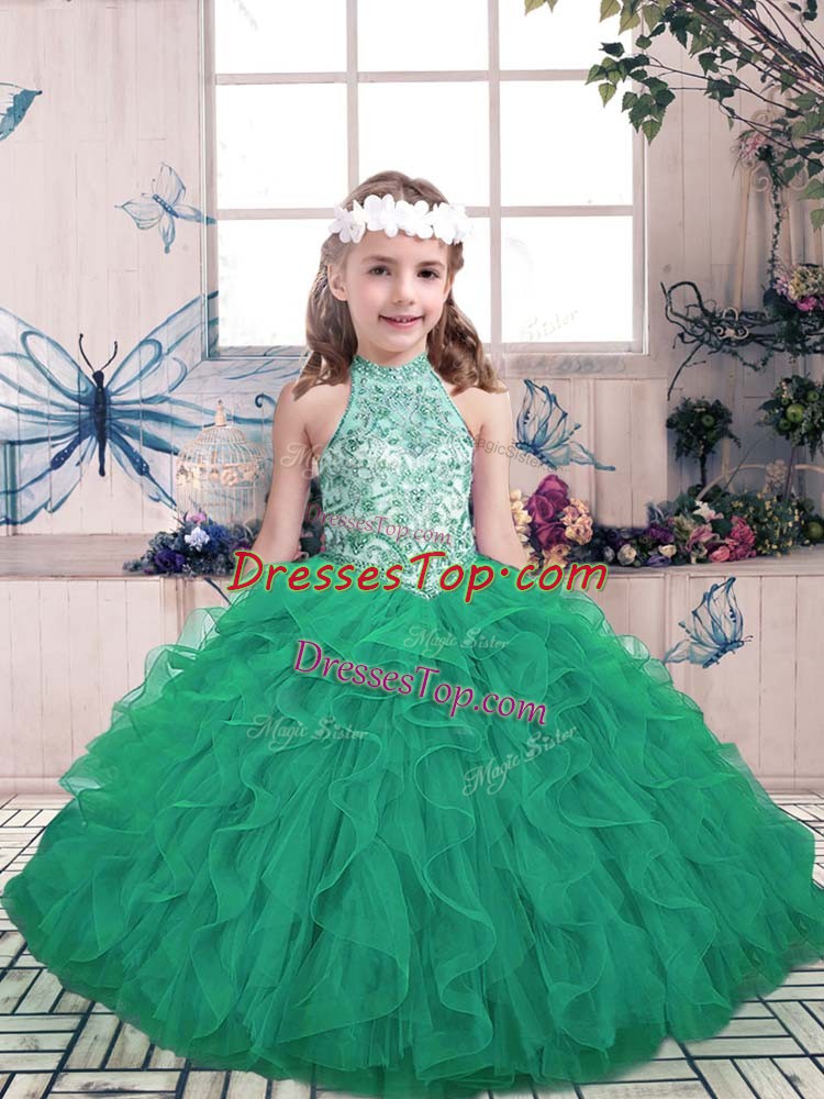 Admirable High-neck Sleeveless Lace Up Pageant Dress Wholesale Green Tulle