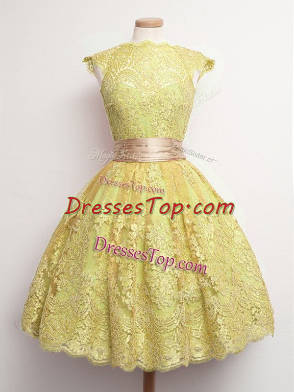 Admirable Knee Length Ball Gowns Cap Sleeves Gold Damas Dress Lace Up