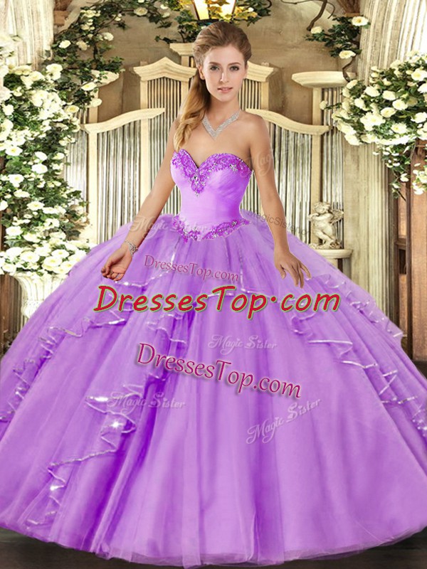 Admirable Lavender Lace Up Ball Gown Prom Dress Beading and Ruffles Sleeveless Floor Length