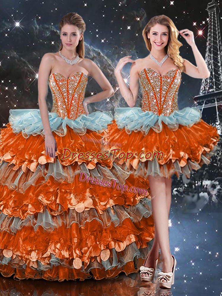 Admirable Multi-color Lace Up Sweetheart Beading and Ruffles and Ruffled Layers Ball Gown Prom Dress Organza Sleeveless