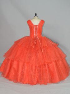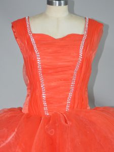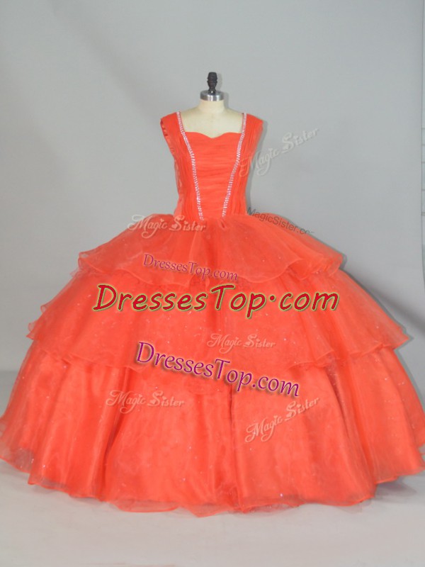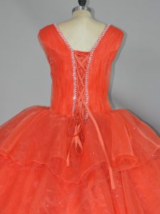 Admirable Orange Red Straps Lace Up Beading and Ruffled Layers Sweet 16 Dress Sleeveless