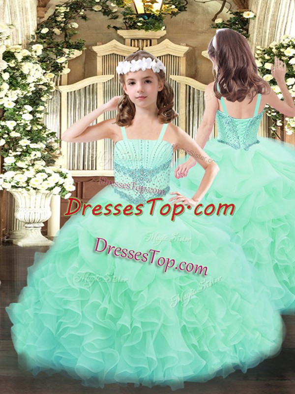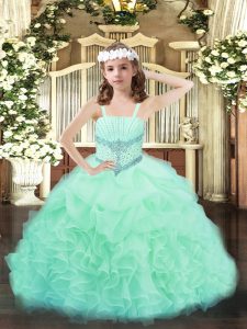 Admirable Organza Sleeveless Floor Length Pageant Dress Wholesale and Beading and Ruffles and Pick Ups