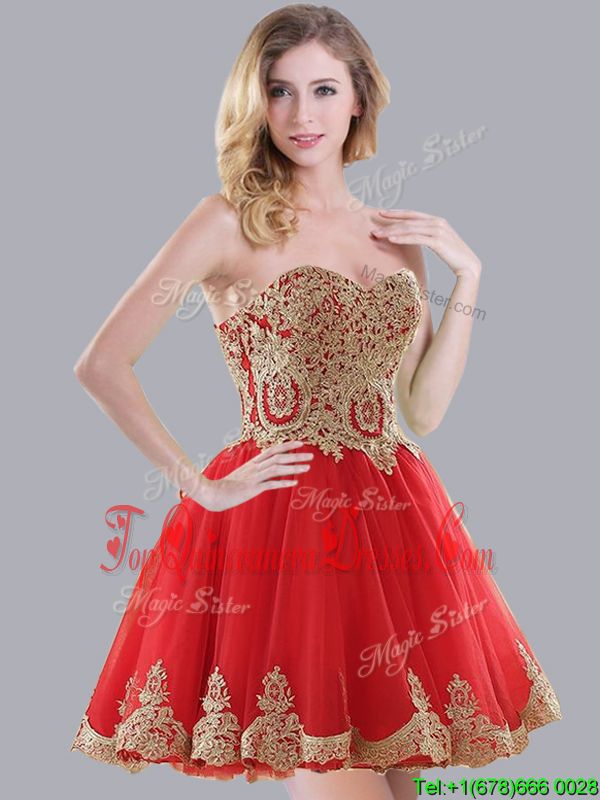 Admirable Red Tulle Lace Up Sweetheart Sleeveless Mini Length Damas Dress Appliques