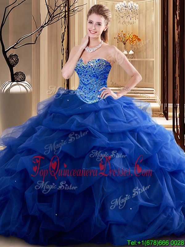 Admirable Royal Blue Sleeveless Tulle Lace Up 15th Birthday Dress for Military Ball and Sweet 16 and Quinceanera