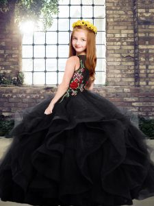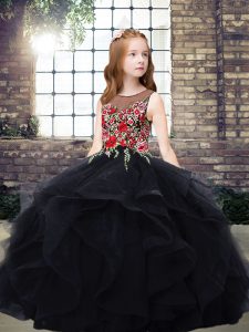 Admirable Scoop Sleeveless Zipper Little Girl Pageant Gowns Black Tulle