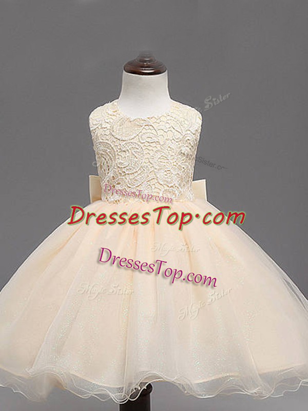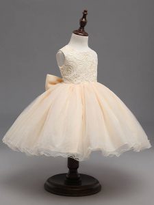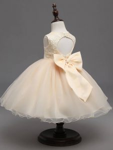 Admirable Sleeveless Backless Knee Length Lace and Bowknot Kids Pageant Dress