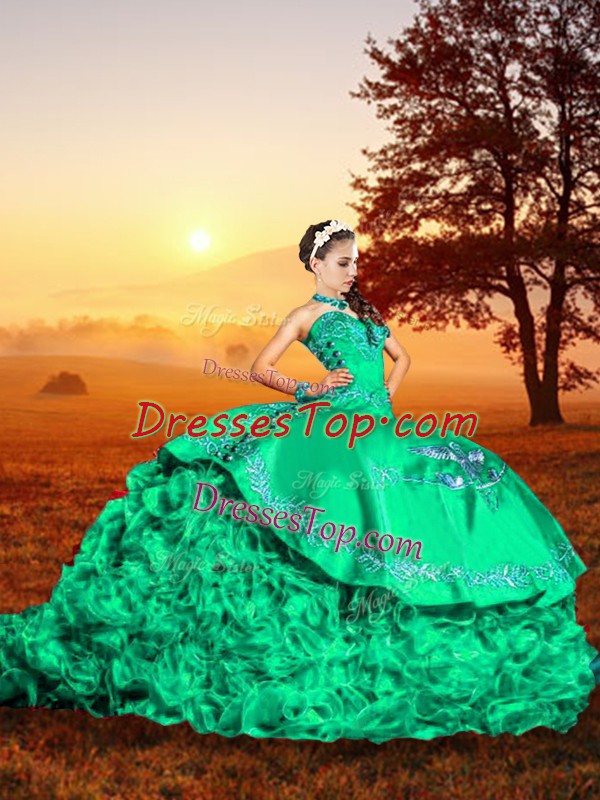 Admirable Sleeveless Brush Train Embroidery and Ruffles Lace Up Sweet 16 Dresses