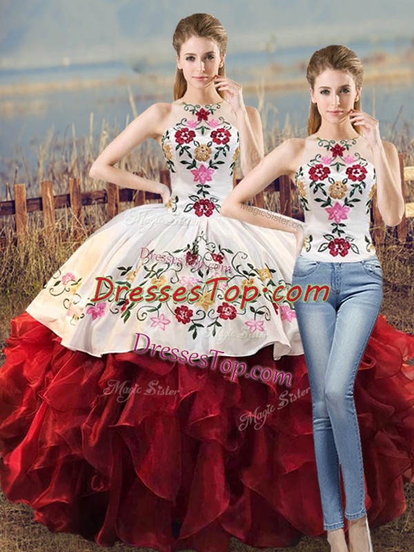 Admirable Sleeveless Embroidery and Ruffles Lace Up Quinceanera Dresses