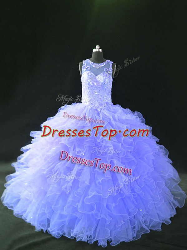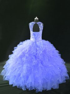 Admirable Sleeveless Floor Length Beading and Ruffles Lace Up 15 Quinceanera Dress with Lavender