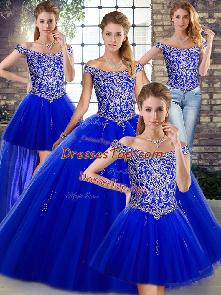 Admirable Sleeveless Floor Length Beading Lace Up Ball Gown Prom Dress with Royal Blue