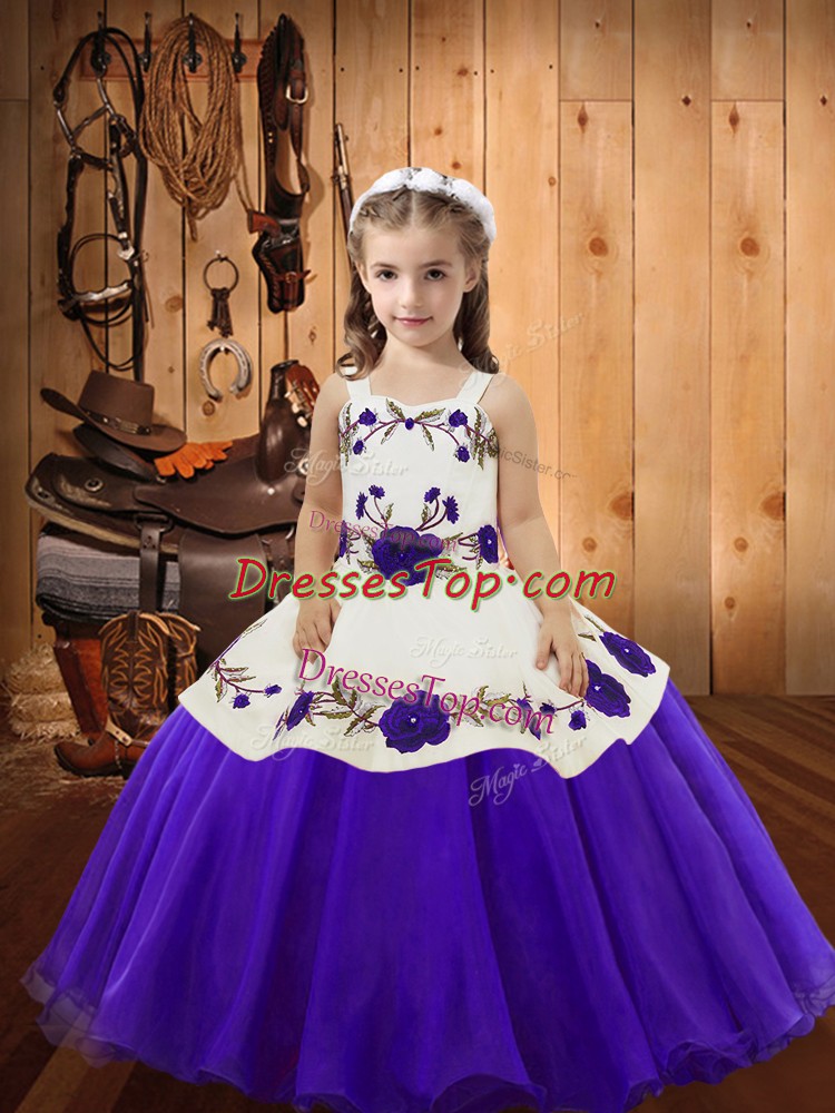 Admirable Sleeveless Organza Floor Length Lace Up Child Pageant Dress in Purple with Embroidery