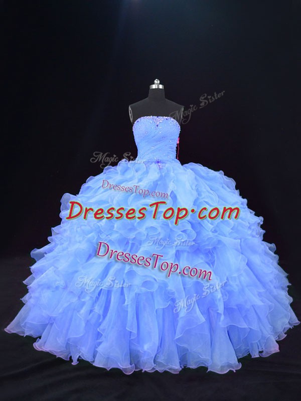 Admirable Strapless Sleeveless Lace Up 15th Birthday Dress Purple Organza