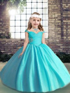 Admirable Tulle Straps Sleeveless Lace Up Beading and Ruching Pageant Gowns For Girls in Baby Blue