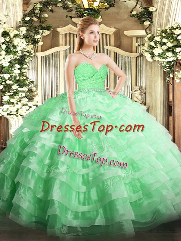 Adorable Apple Green Sweetheart Zipper Beading and Lace and Ruffled Layers 15 Quinceanera Dress Sleeveless