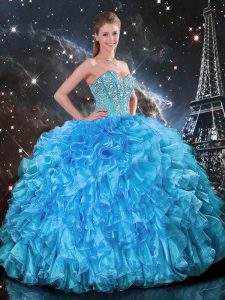 Adorable Beading and Ruffles Quinceanera Gowns Baby Blue Lace Up Sleeveless Floor Length