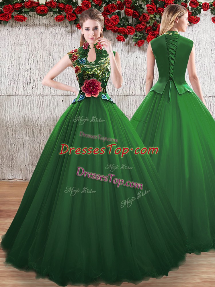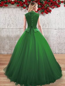 Adorable Floor Length Green Quinceanera Dress V-neck Sleeveless Lace Up