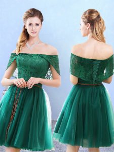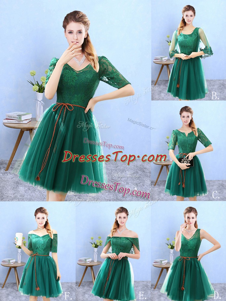 Adorable Green Dama Dress for Quinceanera Prom and Party with Lace V-neck Half Sleeves Backless