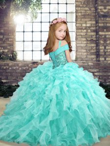 Adorable Lavender Sleeveless Floor Length Beading and Ruffles Lace Up Child Pageant Dress