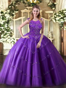 Adorable Sleeveless Beading and Appliques Zipper Ball Gown Prom Dress