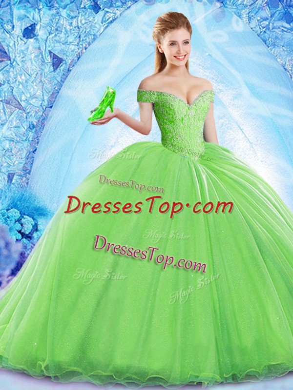 Adorable Sleeveless Brush Train Lace Up Beading Quince Ball Gowns