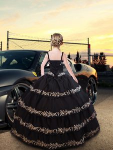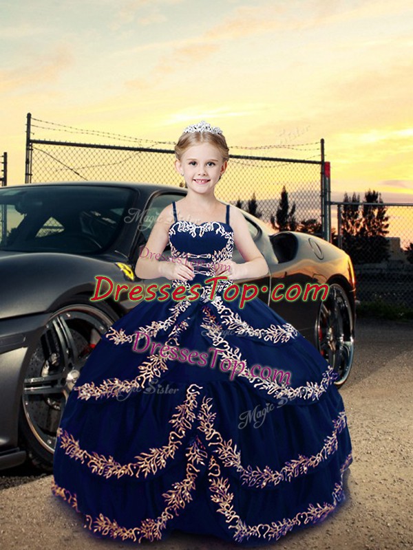 Adorable Sleeveless Floor Length Embroidery Lace Up Pageant Gowns with Navy Blue