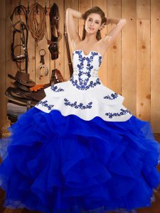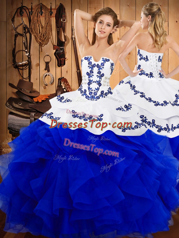 Adorable Strapless Sleeveless Lace Up Vestidos de Quinceanera Blue And White Satin and Organza