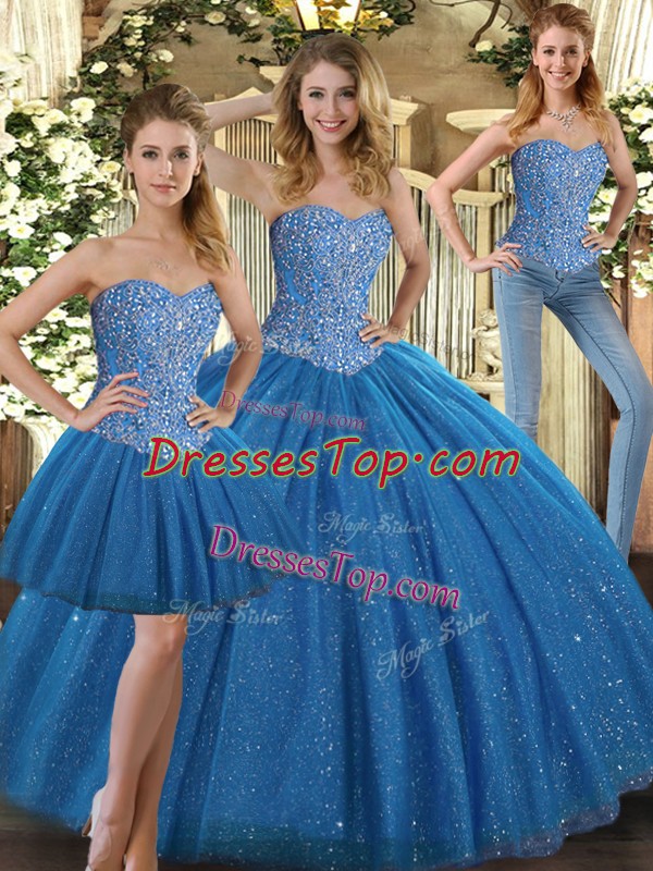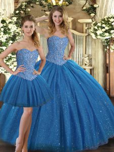Adorable Teal Lace Up Sweet 16 Quinceanera Dress Beading Sleeveless Floor Length