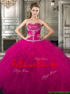 Affordable Beaded and Ruffled Fuchsia Sweet 16 Dress in Tulle