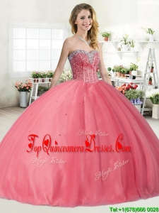 Affordable Beaded Big Puffy Quinceanera Dress in Coral Red