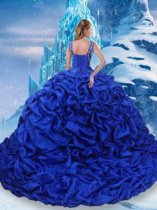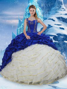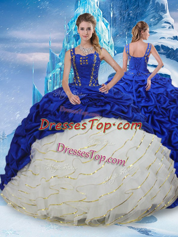 Affordable Blue And White Ball Gowns Taffeta Straps Sleeveless Ruffled Layers and Pick Ups Lace Up Sweet 16 Dresses Brush Train