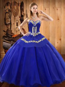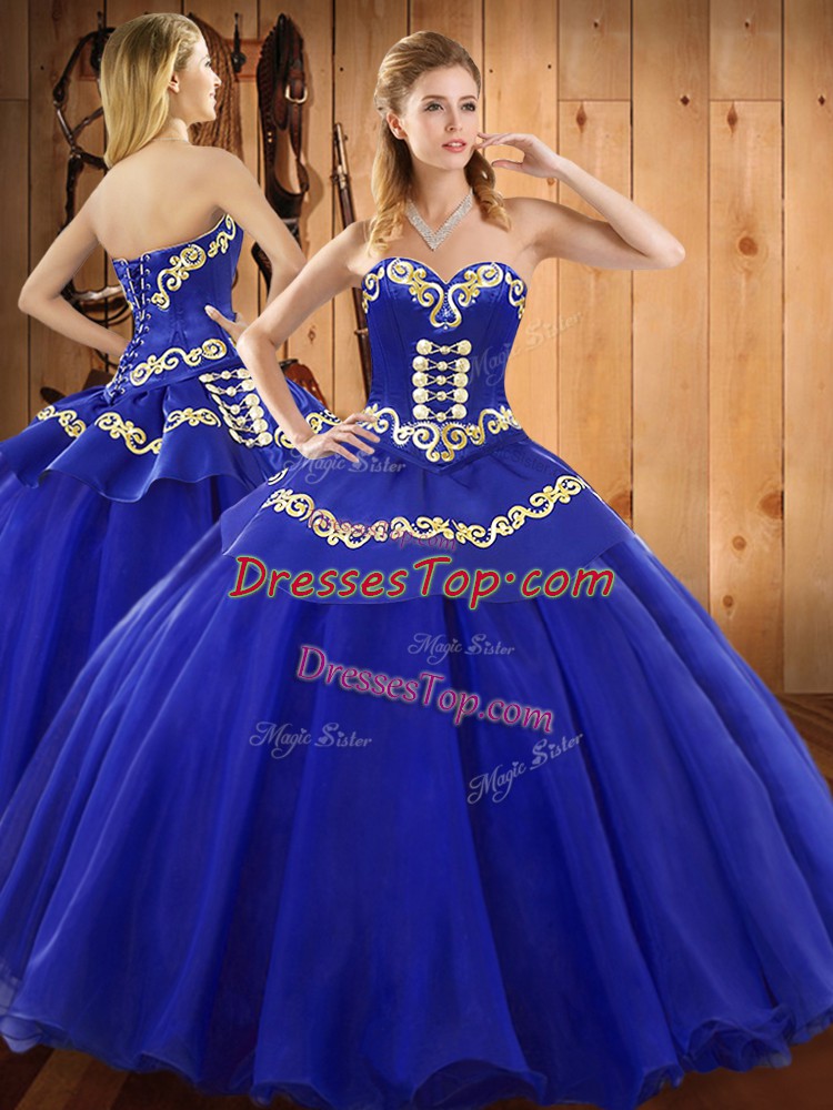Affordable Blue Sleeveless Embroidery Floor Length Sweet 16 Quinceanera Dress