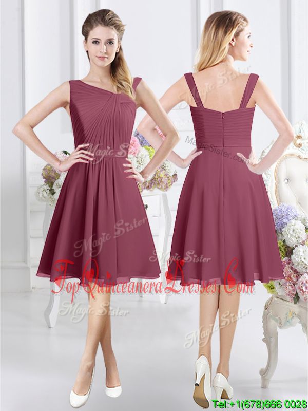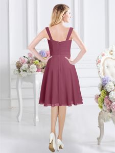 Affordable Burgundy Zipper Vestidos de Damas Ruching Sleeveless Knee Length