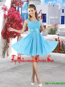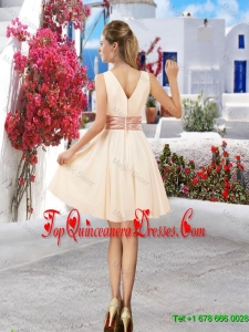 Affordable Champagne V Neck Dama Dresses with Belt and Ruching