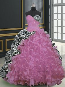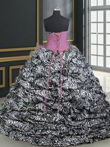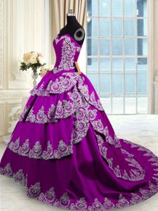 Affordable Eggplant Purple Ball Gowns Sweetheart Sleeveless Taffeta With Train Lace Up Beading and Appliques and Ruffled Layers Sweet 16 Dress