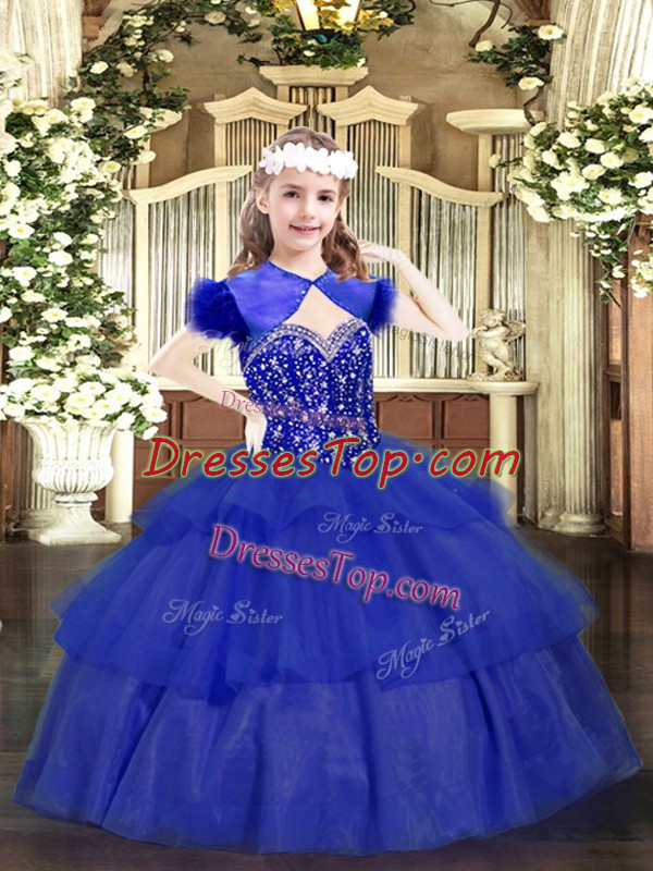 Affordable Floor Length Ball Gowns Sleeveless Royal Blue Little Girls Pageant Dress Wholesale Lace Up