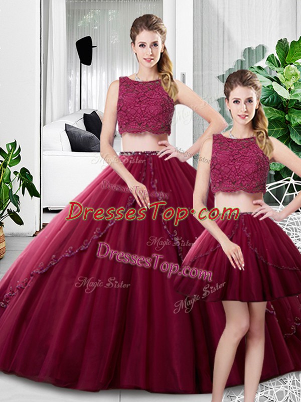 Affordable Fuchsia Scoop Zipper Lace and Ruching Sweet 16 Dresses Sleeveless