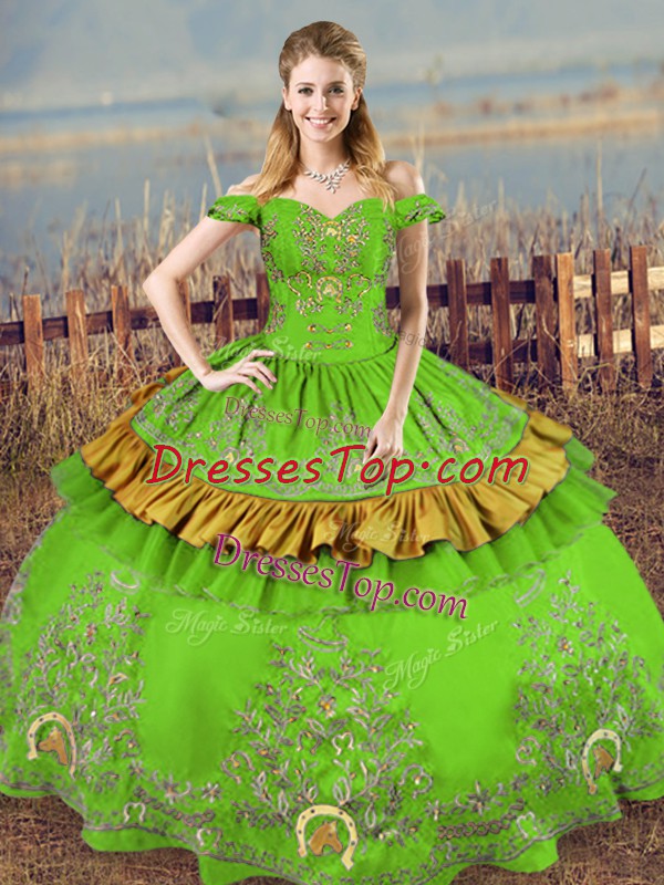 Affordable Green Off The Shoulder Lace Up Embroidery Quinceanera Dresses Sleeveless